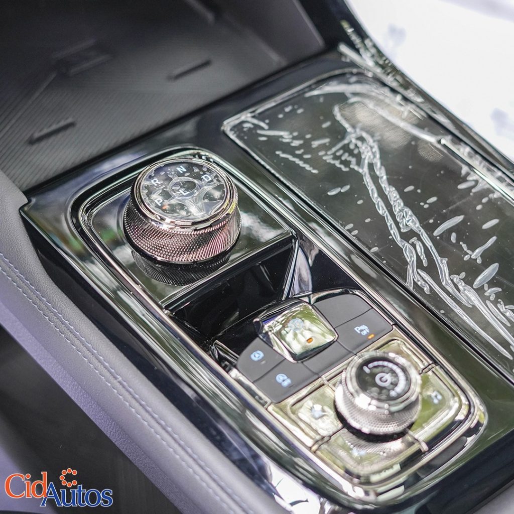 • Consola central forrada en cuero.